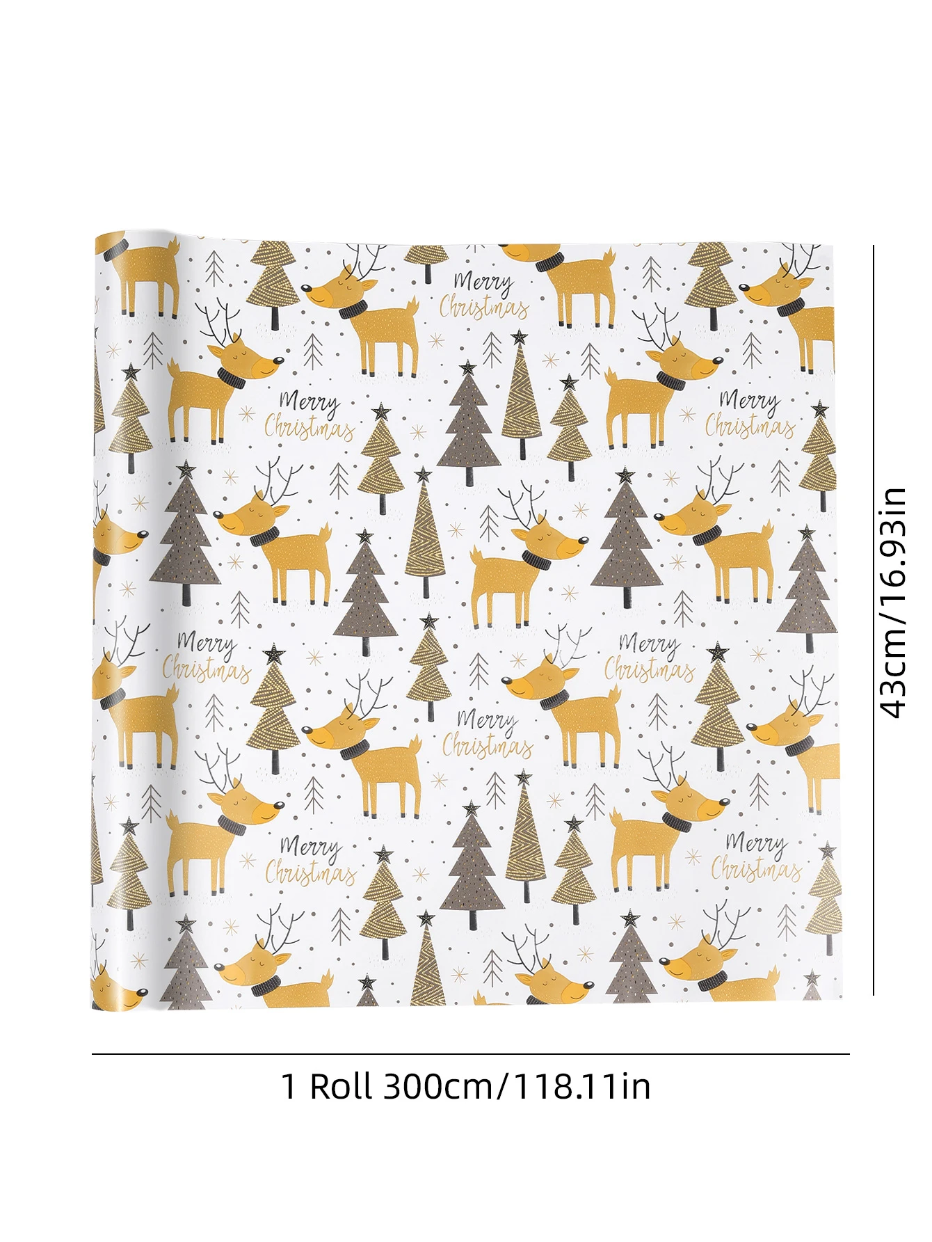 1 Roll Christmas Gift Wrapping Paper – Deer & Christmas Tree Design
