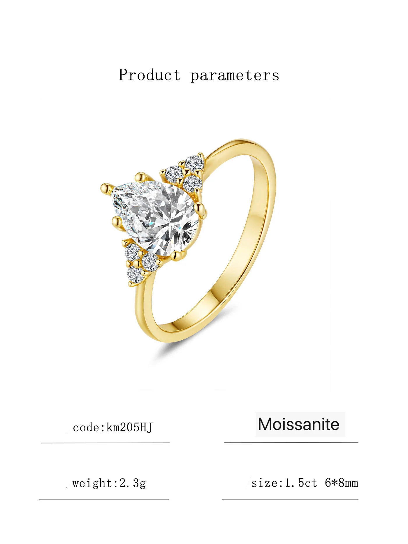 Premium pear-cut moissanite ring in D color and VVS1 clarity. Excellent cut, GRA certified, and perfect for gifts or daily wear.